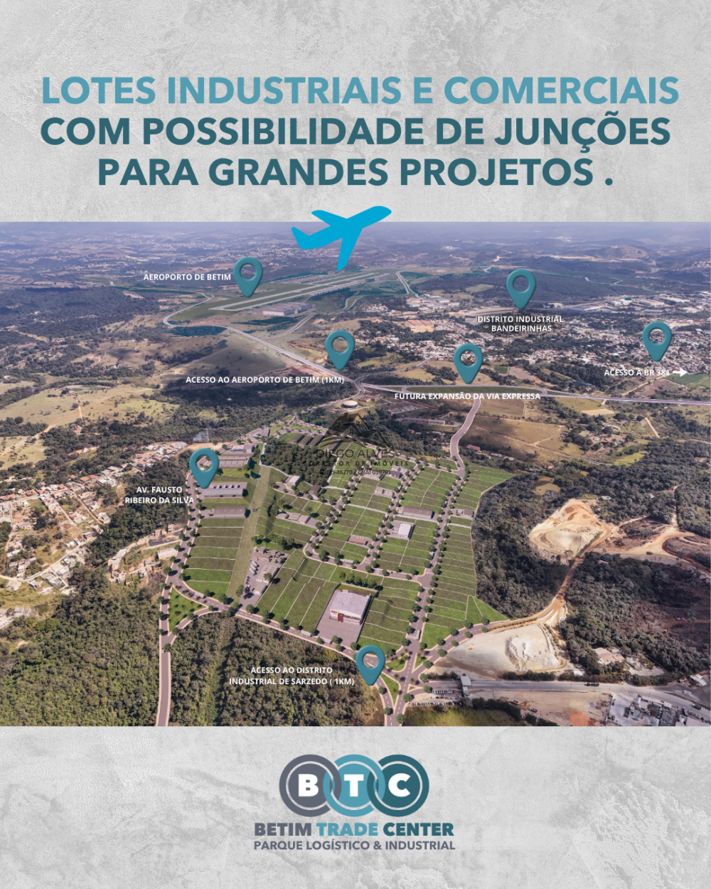- Self storage e guarda-móveis - O zoneamento do BTC permite self storages e guarda-móveis, um setor em plena expansão. Localização estratégica, próximo ao novo Aeroporto de Betim, com valorização garantida.